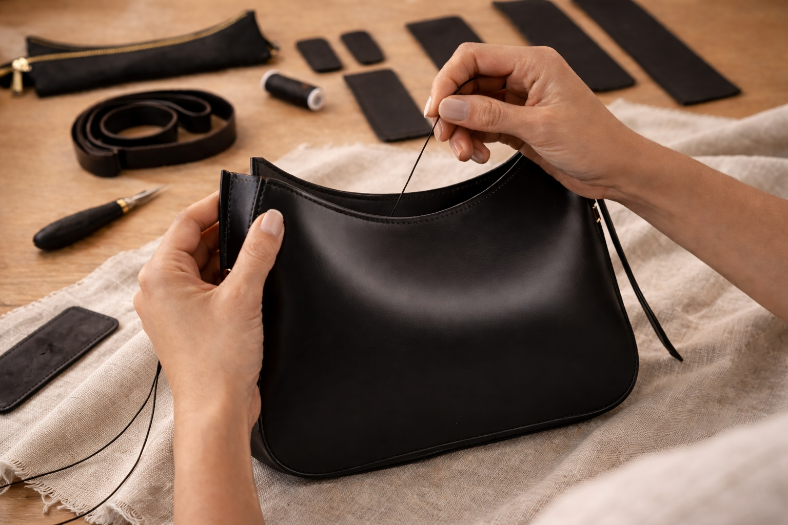 Du trenger ikke å kunne sy. Våre vesker er laget for å være enkle å sette sammen, steg for steg. I hvert sett får du: alle delene som er klare til å sys, nødvendig tilbehør og tydelige instruksjoner som guider deg fra start til slutt.
